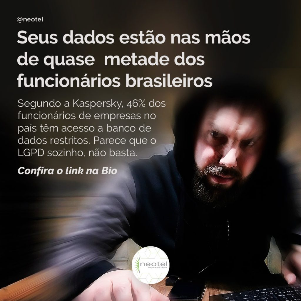Segundo a Kaspersky, 46% dos funcionários de empresas no país têm acesso a banco de dados restritos. Parece que o LGPD sozinho, não basta.