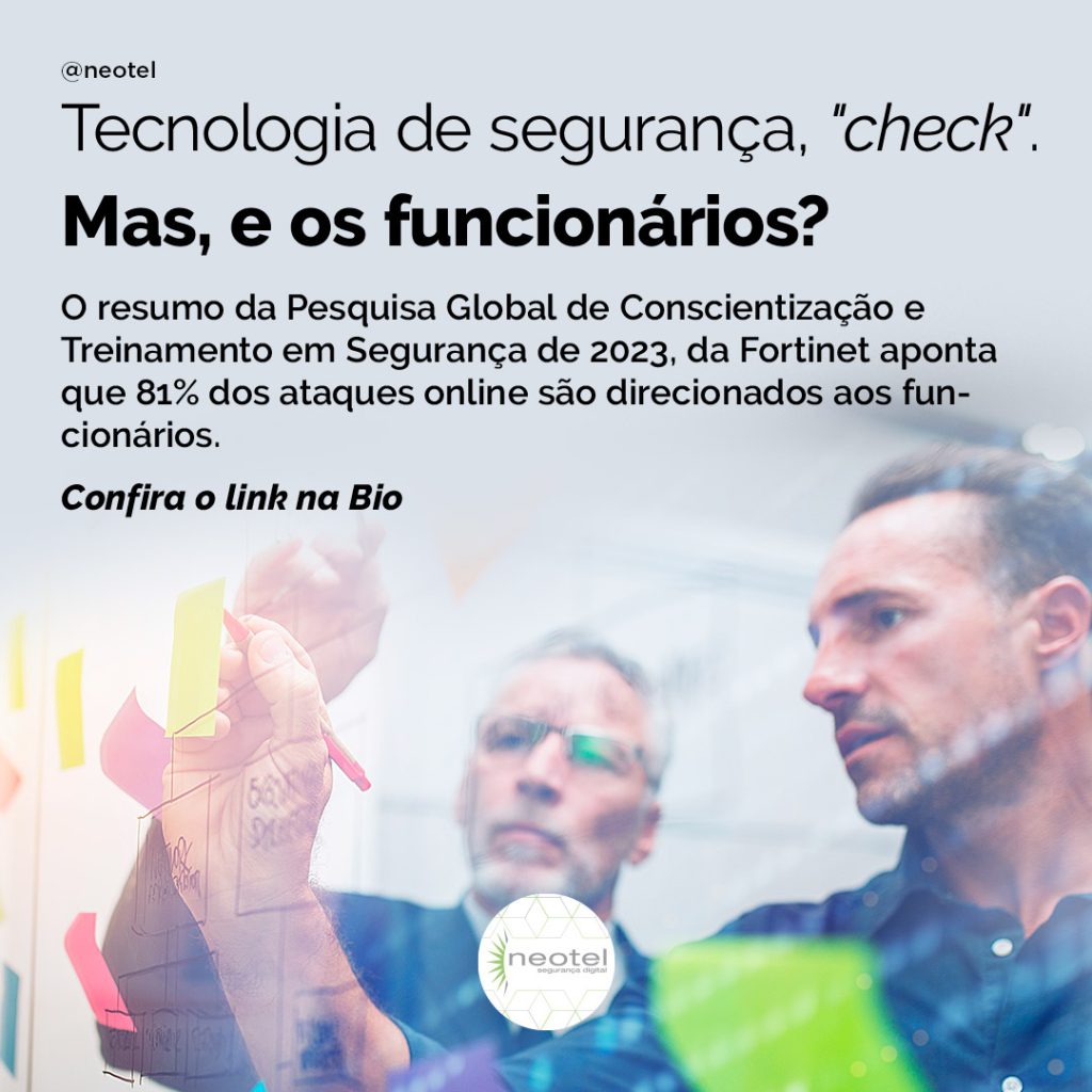 O resumo da Pesquisa Global de Conscientização e Treinamento em Segurança de 2023, da Fortinet aponta que 81% dos ataques online são direcionados aos funcionários.